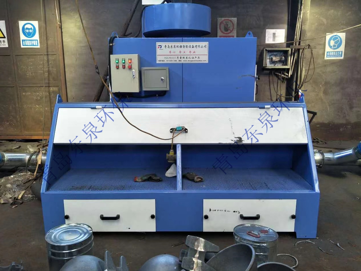 本設(shè)備在風(fēng)機(jī)的作用下,含塵氣體從除塵器正面的迷宮式進(jìn)風(fēng)窗進(jìn)入除塵器箱體。粉塵通過迷宮窗慣性碰撞除塵,大顆粒粉塵被碰撞分離,火星被熄滅,粉塵進(jìn)入第二級(jí)濾筒高 效過濾段,含塵氣體由濾筒外表面穿過濾芯,粉塵則被濾芯阻攔在其表面,當(dāng)被阻攔的粉塵在濾芯表面不斷沉積時(shí),當(dāng)壓差達(dá)到設(shè)定值時(shí),壓差傳感器發(fā)出指令,通過脈沖噴吹對(duì)濾筒進(jìn)行逐個(gè)清灰,使得沉積在濾芯表面上的粉塵顆粒在壓縮空氣的沖擊下,脫離濾芯表面落入集塵抽屜中,使得整個(gè)濾芯表面都得到清潔,凈化后的空氣經(jīng)風(fēng)機(jī)排出。