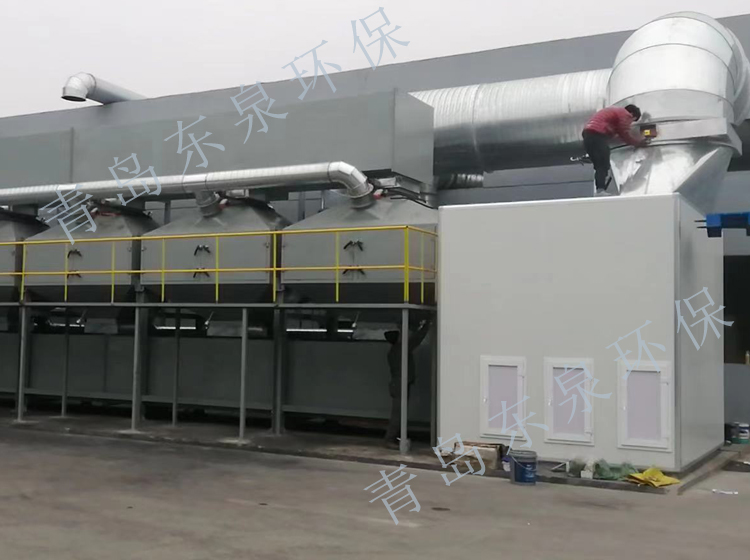 2.經(jīng)過過濾后的廢氣,進(jìn)入后續(xù)設(shè)備的吸附床,吸附凈化的潔凈氣體排放煙囪,吸附在蜂窩活性炭上的有機(jī)物,利用高溫氣體(100~120℃)對其進(jìn)行脫附。高溫氣體來源為后方CO燃燒后的高溫空氣與自然風(fēng)混合生成。